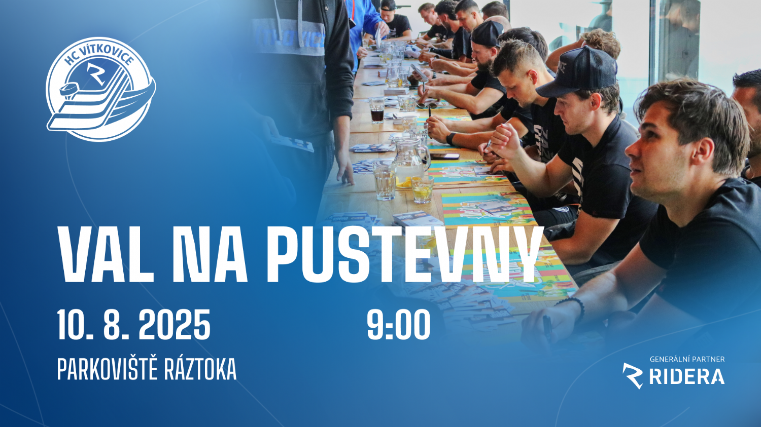 Zvolte si, prosím, tempo, obleční a vybavení vhodné vašim schopnostem a zdravotnímu stavu. Klub HC VÍTKOVICE RIDERA nenese žádnou zodpovědnost za zdraví účastníků, kteří se této společné akce účastní zcela dobrovolně. Budeme rádi, když si každý z této akce odnese ty nejkrásnější vzpomínky a dobře se naladí na nadcházející sezonu.